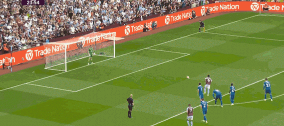 第23分钟,皮克福德出击没有碰到皮球,他对沃特金斯犯规被吹罚点球。第24分钟,路易斯主罚点球破门,维拉2-0领先埃弗顿。