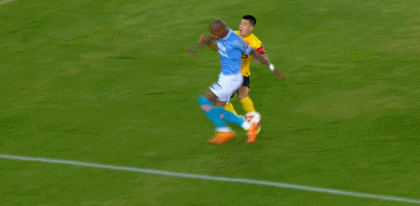 眼看主场作战的济南新州,仅仅是一球领先主裁判马腾又开始了他的“表演”。冯轶梵在禁区内防守卡兰加时用手搭在了卡兰加的肩膀上,这位巴西外援显然是尝到了主裁判刚刚判罚点球的甜头,于是故技重施。当卡兰加感受到广州队球员与他有身体接触时,他就迅速的如同触电般的腾空而起,非常舒展地旋转倒地,同时摊开双手向主裁判索要点球。主裁判马腾第2次指向了12把济南新旧队,在比赛进行了不到40分钟就已经获得了两个点球。结果卡兰加主罚的点球被广州队门将霍深坪神勇扑出,随后对方球员热合米图拉的补射也被霍深坪扑出。