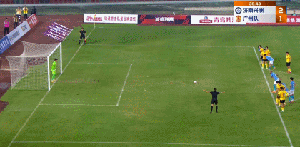 开场仅仅3分钟,王世龙在与对方的拼抢中倒在地上,在中国足坛混迹多年的卡兰加突然灵机一动,将球踢向了王世龙的手臂,同时举手大喊,向主裁判马腾索要点球,济南兴洲主场球迷一起哄,主裁判马腾顺势指向了十二码,济南兴洲获得了一个点球的机会。对方外援坦布主罚点球一蹴而就,济南兴洲1-0领先广州队。广州队相当于在客场自带0-1开场比赛。