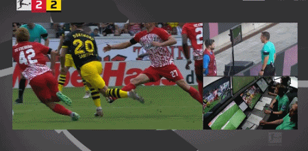 第82分钟,霍夫勒踩踏萨比策小腿,主裁经VAR确认后将其直红罚下!