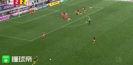 第50分钟,弗赖堡任意球开到禁区,霍夫勒头槌破网!弗赖堡2-1补时反超!