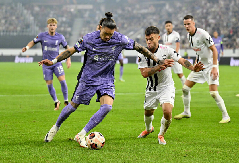 第57分钟,努涅斯点射得手帮助利物浦队扳平比分!