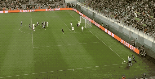 上半场补时阶段,帕雷德斯任意球打在防守球员身上产生折射,罗马1-0!