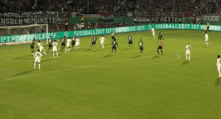 上半场补时阶段,基米希传中,小将克雷齐希门前抢点得手,拜仁3-0稳操胜券。