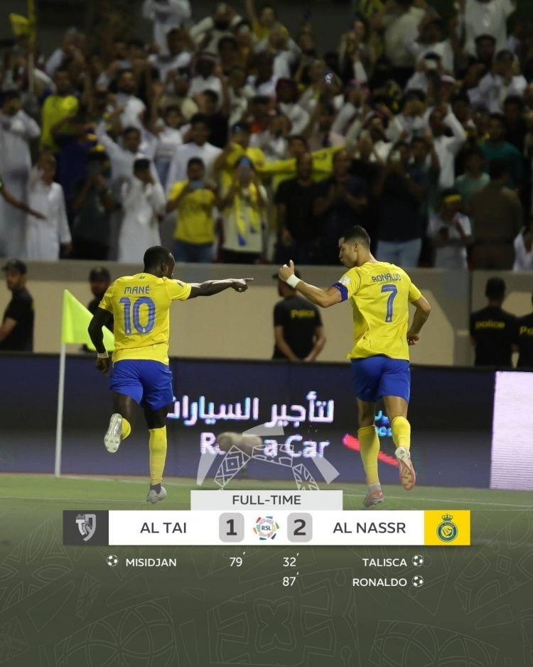 第31分钟,C罗灵性跳球,塔利斯卡跟进低射破门!利雅得胜利1-0!