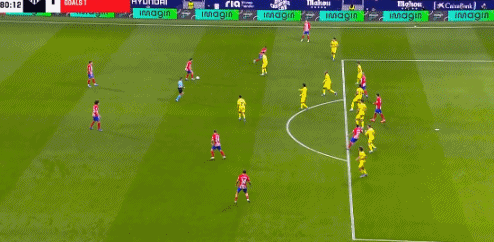 第45+1分钟,格列兹曼下底横传,维特塞尔包抄破门!马竞1-1比利亚雷亚尔