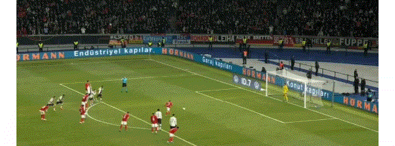 第70分钟,VAR回看哈弗茨此前禁区内的手球,主裁判罚点球!尤素夫-萨里点射命中,土耳其3-2!
