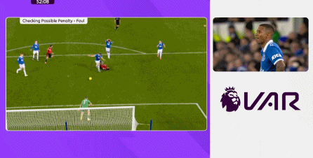 第52分钟,B费横传,马夏尔杀入禁区被阿什利杨绊倒,裁判第一时间吹罚马夏尔假摔,后续裁判通过VAR回放确认阿什利杨犯规,取消马夏尔黄牌,并判罚点球!