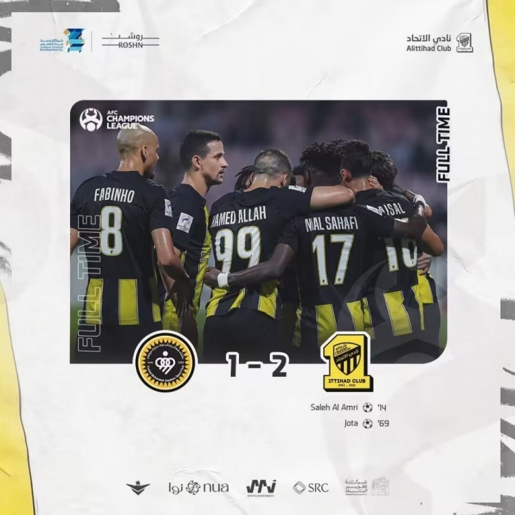 第69分钟,若塔捅射破门,吉达联合2-1!