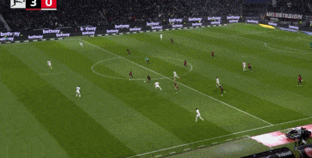 第36分钟,拉松左晃右突左脚破门!法兰克福3-0!