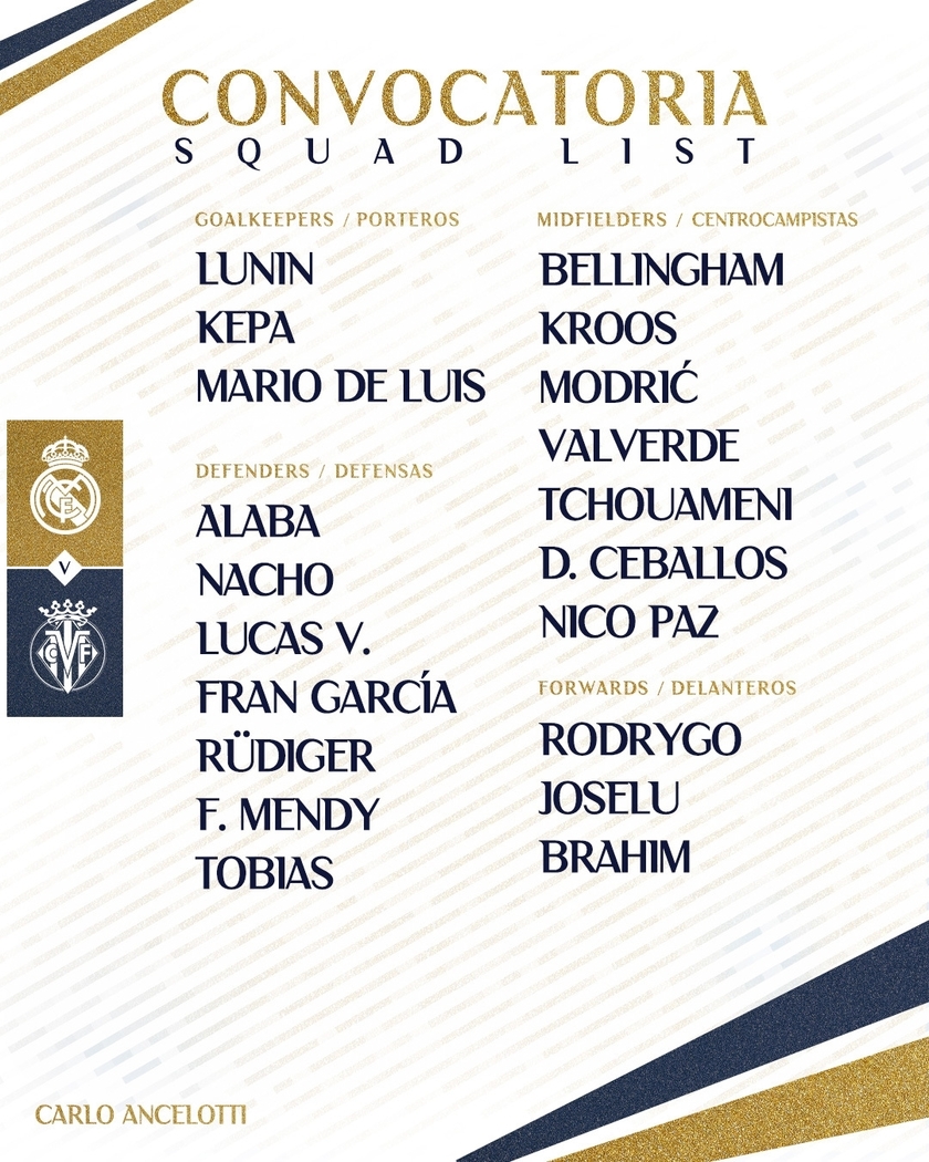 门将:卢宁、凯帕、马里奥-德-路易斯