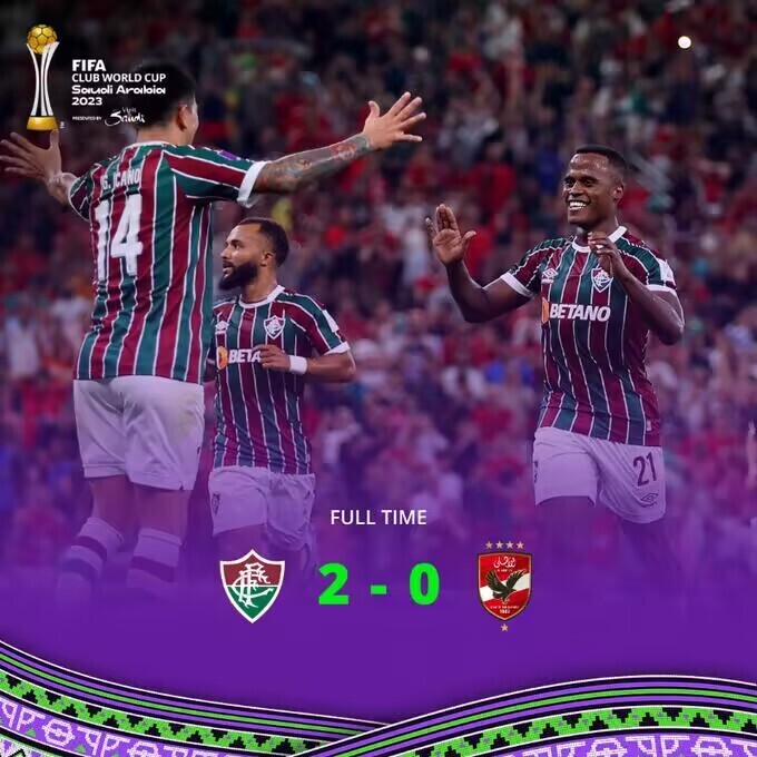 nba直播讯 北京时间12月19日凌晨2点整,2023年世俱杯半决赛展开角逐,弗鲁米嫩塞对阵开罗国民。上半场阿里亚斯两度中框,法比奥神扑救险,下半场马塞洛造点,阿里亚斯点射,肯尼迪锁定胜局。最终弗鲁米嫩塞2-0战胜开罗国民进军决赛,弗鲁米嫩塞决赛将对阵曼城与浦和红钻之间的胜者。