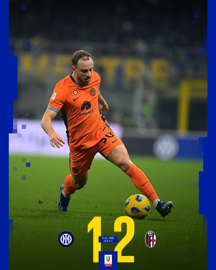 nba直播讯 意大利杯1/8决赛,卫冕冠军国际米兰主场1-2不敌博洛尼亚!下半场劳塔罗失点,常规时间两队0-0战平,加时赛开场卡洛斯-奥古斯托头球建功,别克马、恩多耶为博洛尼亚连进两球!最终,国米止步意大利杯16强。