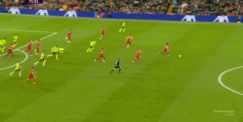 第72分钟,利物浦反击万箭齐发,阿诺德最后一击中楣