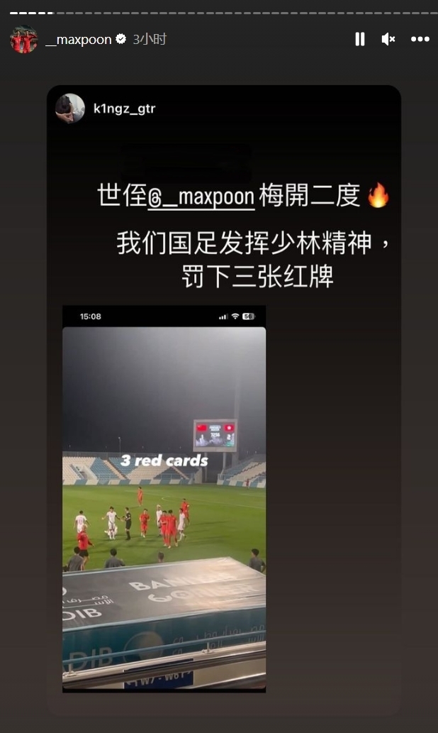 nba直播讯 国足在闭门热身赛中1-2不敌中国香港,赛后,梅开二度的中国香港前锋潘沛轩社媒转发了动态。