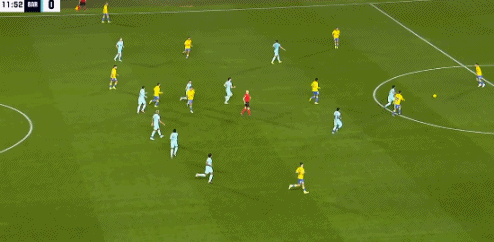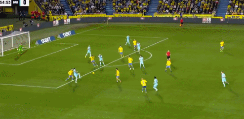 第55分钟,罗贝托短传,费兰得球冷静推射破门!拉斯帕尔马斯1-1巴萨