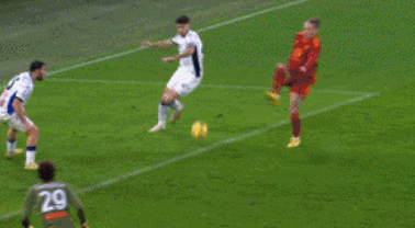 第38分钟,卡尔斯多普禁区被踩踏制造点球,迪巴拉主罚命中!罗马1-1!