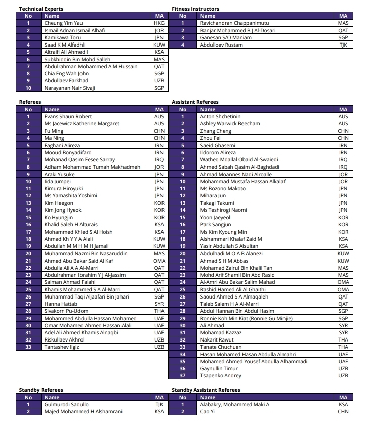 亚洲杯裁判名单:傅明、马宁主裁、张铖、周飞助理裁判
