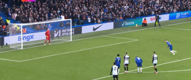 第45+4分钟,斯特林造点,帕尔默罚进点球,切尔西1-0富勒姆
