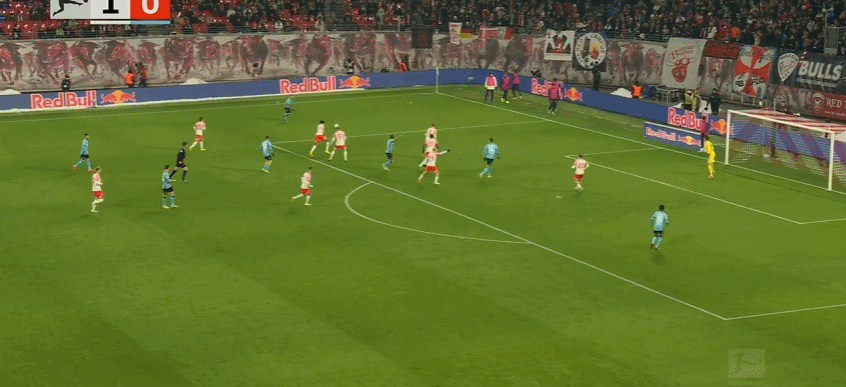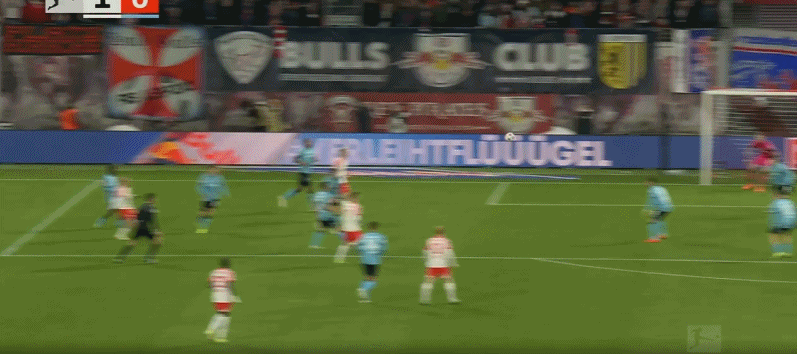 第47分钟,格里马尔多左路横扫,内森特拉后点推射,莱比锡红牛1-1!