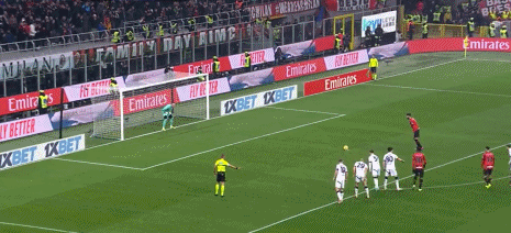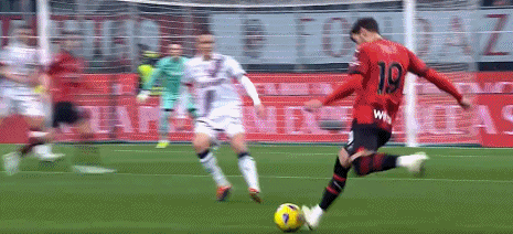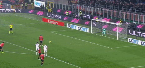 第45分钟,卡拉布利亚横扫门前,奇克包抄破门,米兰1-1!