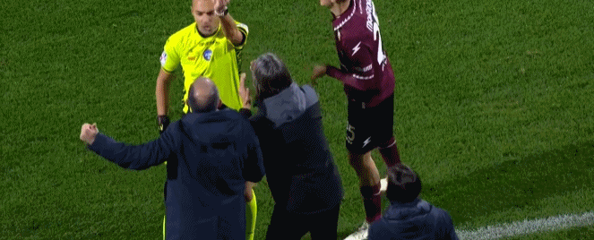 第88分钟,萨勒尼塔纳教练员不满裁判判罚,裁判向其出示红牌