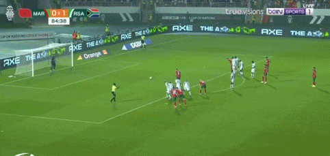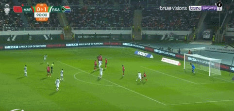 第90+5分钟,特博霍主罚任意球射门,南非2-0!