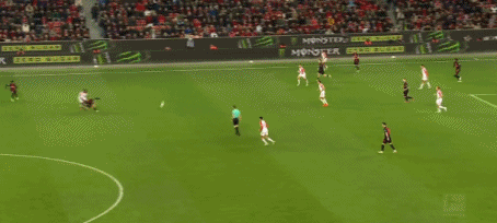 第95分钟,诺伊尔参与角球进攻但防守球员完成解围,弗林蓬推进到前场后吊射空门得手,勒沃库森3-0!