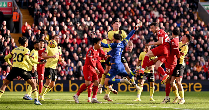 nba直播讯 北京时间2月10日23:00,英超第24轮,利物浦主场迎战伯恩利。上半场,阿诺德角球送出助攻,若塔头球破门,克洛普抱怨判罚染黄,达拉-奥谢扳平;下半场,迪亚斯建功,埃利奥特助攻努涅斯破门,福法纳屡失良机。最终,利物浦3-1击败伯恩利,多赛一场领先曼城2分重返榜首,伯恩利积13分位列积分榜第19位。