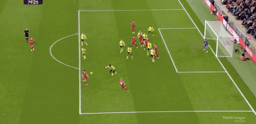 第79分钟,利物浦的左侧角球开到禁区,努涅斯头球攻门得手。利物浦3-1!