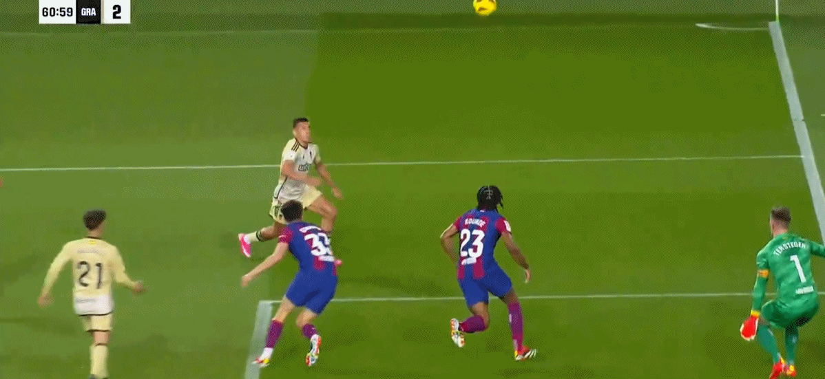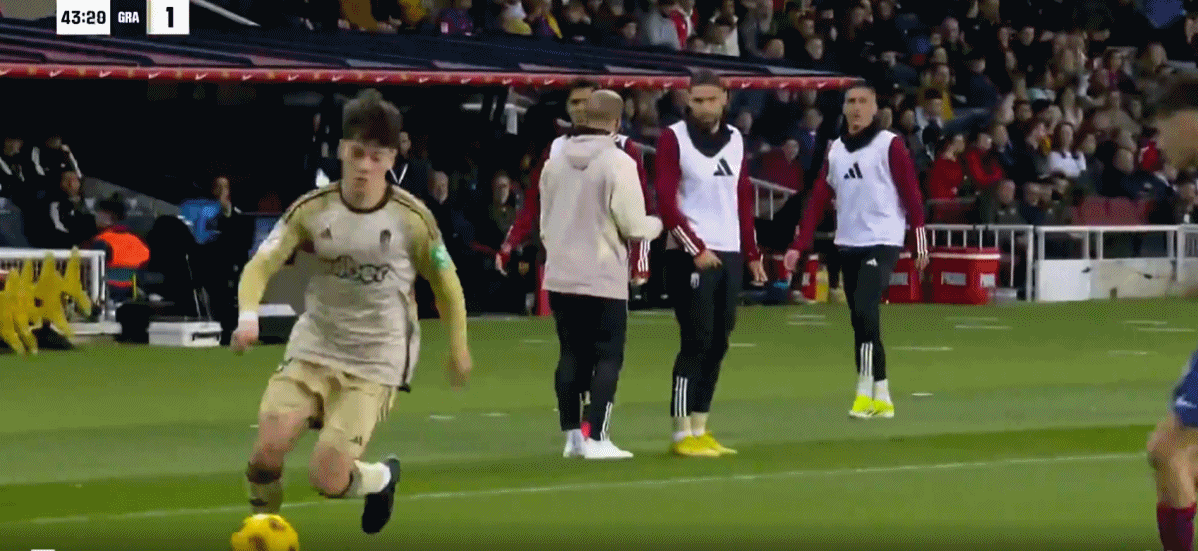 第43分钟,佩利斯特里右路传中,里卡德-桑切斯抽射破门!格拉纳达1-1!