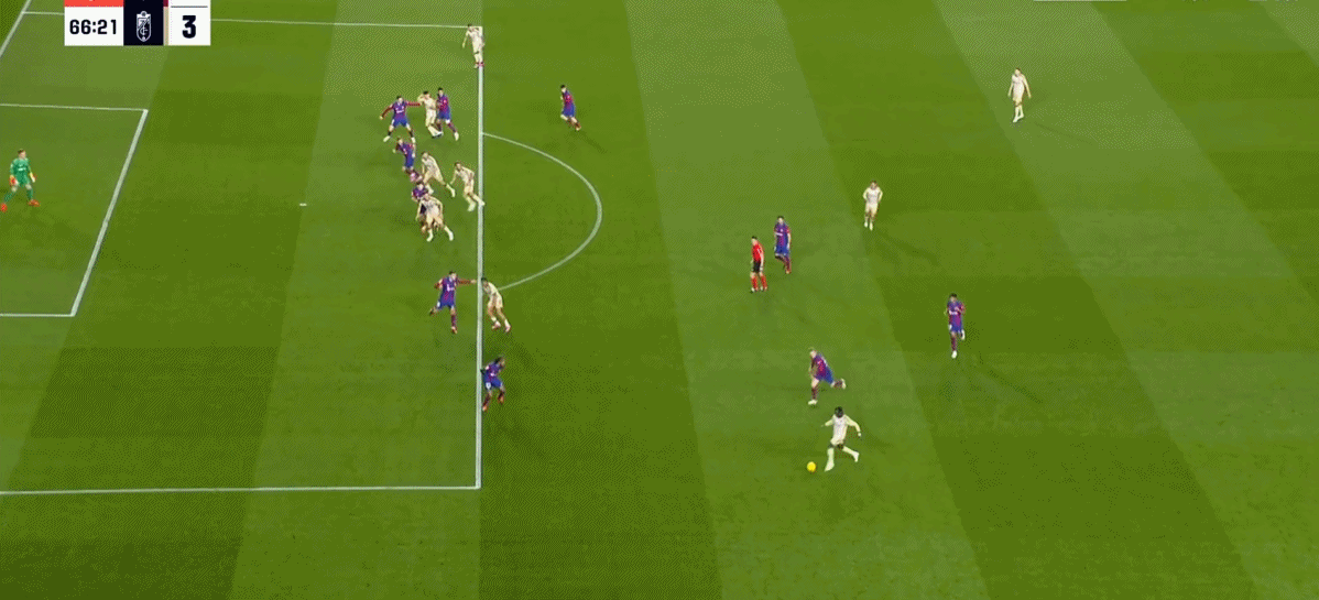 第61分钟,乌祖尼左路横敲,佩利斯特里推射破门!格拉纳达2-1!