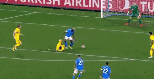 第75分钟安古伊萨直传导致马丁内斯防守摔倒,奥斯梅恩抓住机会推射破门1-1扳平!