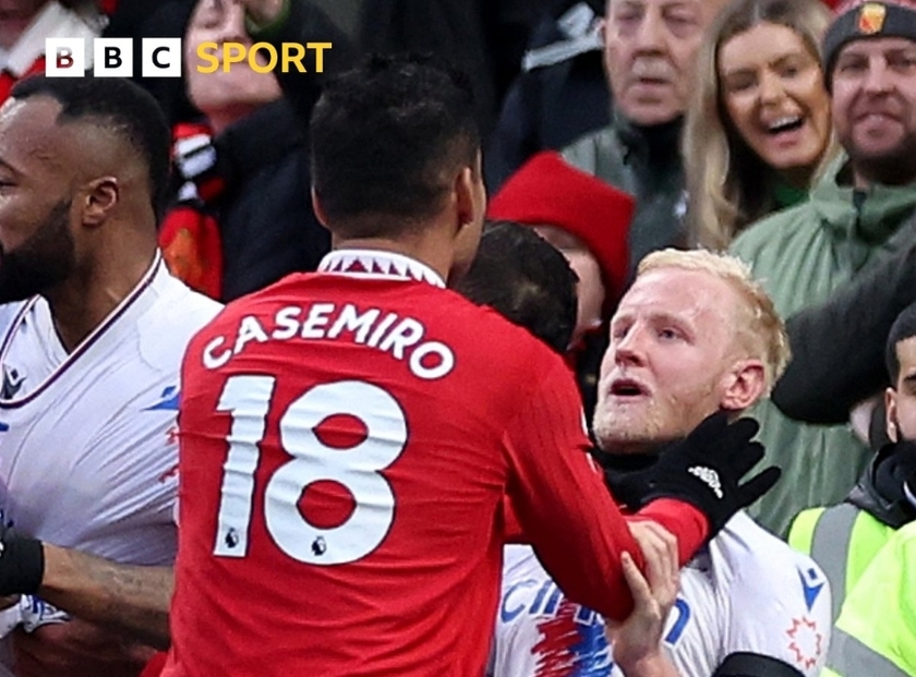 上赛季曼联主场对阵水晶宫,双方爆发冲突,卡塞米罗因锁喉动作被红牌罚下!