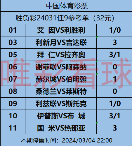金石开:本周,体彩中心很难得地在周一安排了一期胜负彩,这也是因为周二、周三的场次不够,需要将明天凌晨进行的一些比赛囊括进入。本期周一彩也包括亚冠、欧冠、英超、英冠、意甲、西甲、法乙、葡超等各项赛事。亚冠淘汰赛继续进行,本期竞猜的比赛中有利雅得胜利、利雅得新月等两个胆材,这两支球队目前也是排名球星云集的沙特联赛前两名。利雅得新月本轮做客挑战阿联酋球队阿尔艾因,首轮亚冠,两队都是主场获得获胜,艾因2比1力克纳萨夫,淘汰对手进入八强;利雅得胜利者则是主场2比0击败费哈,双杀对手。上轮联赛,利雅得胜利意外地在主场4比4被垫底球队艾哈斯姆逼平,当时C罗因为遭遇一场禁赛而缺席了比赛。在C罗本轮亚冠回归的情况下,利雅得胜利能否做客征服阿联酋?