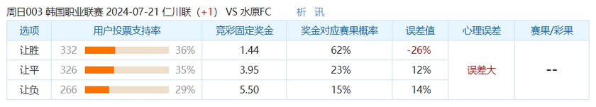 周日003 韩职 2024-07-21 仁川联(+1)VS水原FC