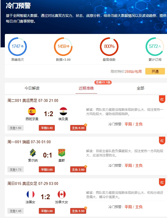 冷门预警