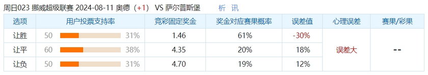 周日023 挪超 2024-08-11 奥德(+1)VS萨尔普斯堡