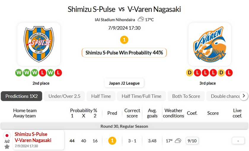 Shimizu S-Pulse are on a run of 20 consecutive home undefeated at half time matches in their domestic league