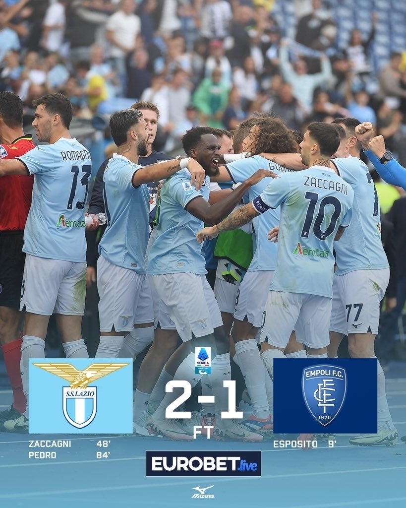 nba直播讯 北京时间10月7日,意甲第7轮迎来一场焦点对决,拉齐奥在主场迎战恩波利。在这场备受瞩目的比赛中,37岁的老将佩德罗再次展现出其出色的得分能力,用一记右脚爆杆进球为拉齐奥打入绝杀球,帮助球队以2-1的比分战胜对手,送给恩波利赛季首败。