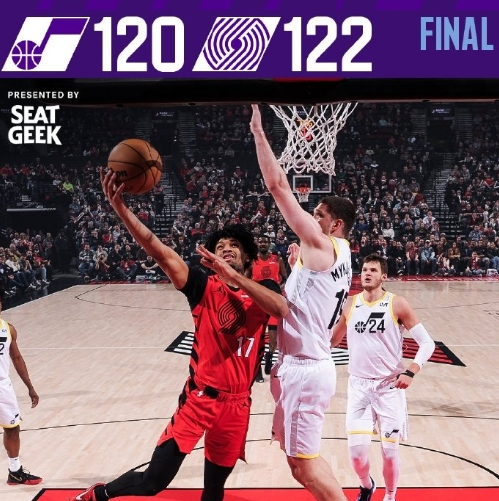 决定胜负的第四节,波特兰开拓者的阿弗迪亚再次挺身而出,他凭借着顽强的毅力和出色的技术,在进攻端火力全开,单节拿下 14 分,成为球队追分的关键人物。爵士队的朱赞也在努力为球队保住领先优势,单节拿下 12 分,但依旧无法抵挡开拓者的猛烈反扑。比赛进入白热化阶段,双方比分交替上升,现场气氛紧张到了极点,球迷们的呐喊声和欢呼声此起彼伏,仿佛要将整个球馆掀翻。就在比赛的最后关头,开拓者队凭借着坚韧不拔的精神和出色的团队配合,成功抓住机会,实现了逆转,最终以 122 - 120 的比分险胜犹他爵士,赢得了这场来之不易的胜利。