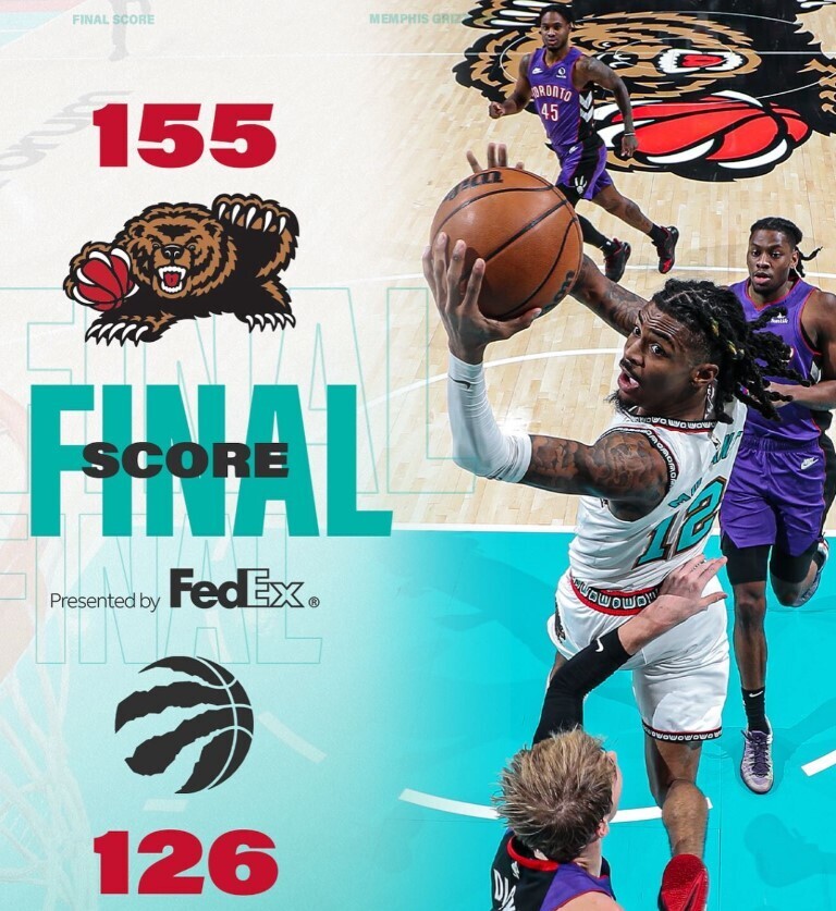 在一场东西部对抗中,灰熊队在主场展现出了强大的火力,全队共有8人得分上双,投篮命中率高达53.2%,三分球命中率也有40%。最终,灰熊队以155-126大胜猛龙队,刷新了本赛季全联盟球队单场得分新高。