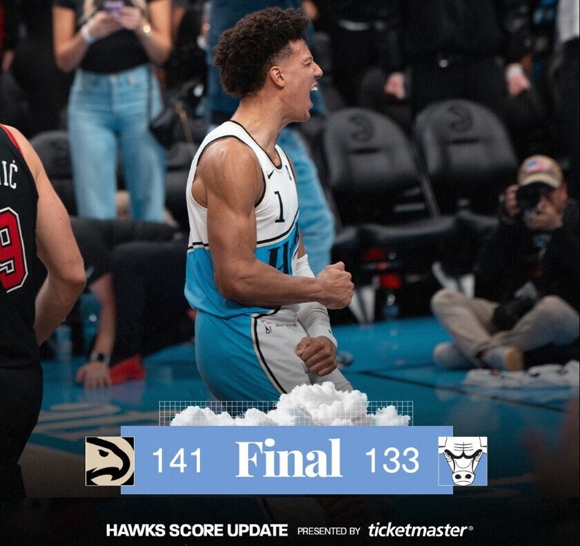 芝加哥公牛队在客场挑战亚特兰大老鹰队的比赛中,前三节一度领先21分,但老鹰队在末节疯狂反扑,单节砍下50分,最终完成惊天大逆转,以141-133战胜公牛队。