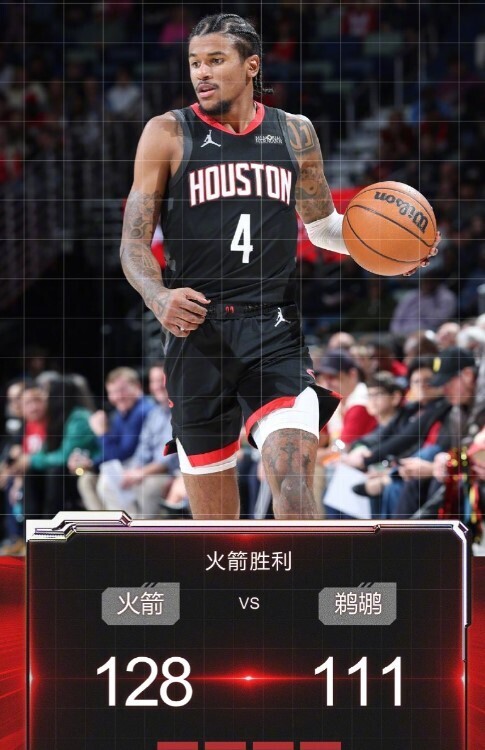 在2024-2025赛季NBA常规赛中,火箭队主场迎战鹈鹕队。杰伦格林表现出色砍下30分,帮助火箭队以128-111战胜鹈鹕队,送给对手8连败。墨菲三世虽然得到21分,但未能帮助鹈鹕队扭转败局。