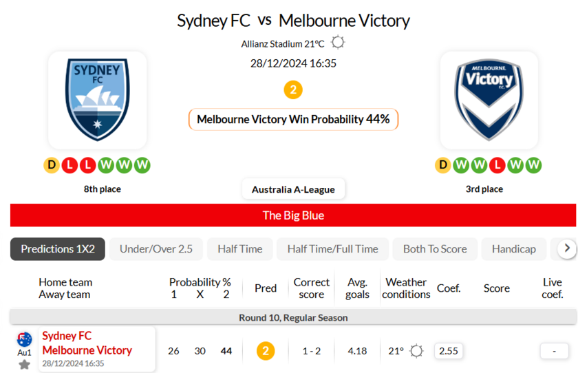 悉尼FC在过去14场A级联赛主场比赛中保持半场不败