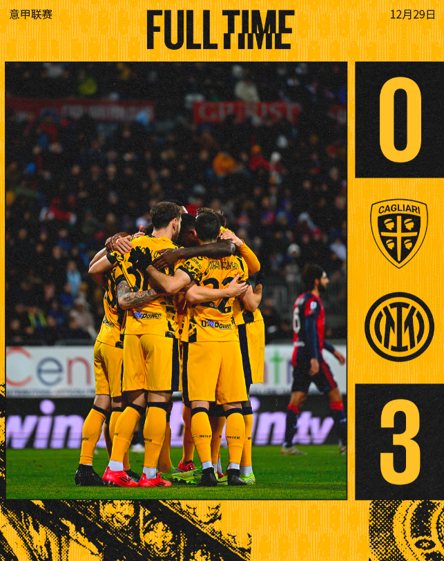 最终,国际米兰凭借巴斯托尼、劳塔罗和恰尔汗奥卢的进球,以3-0的比分完胜卡利亚里。