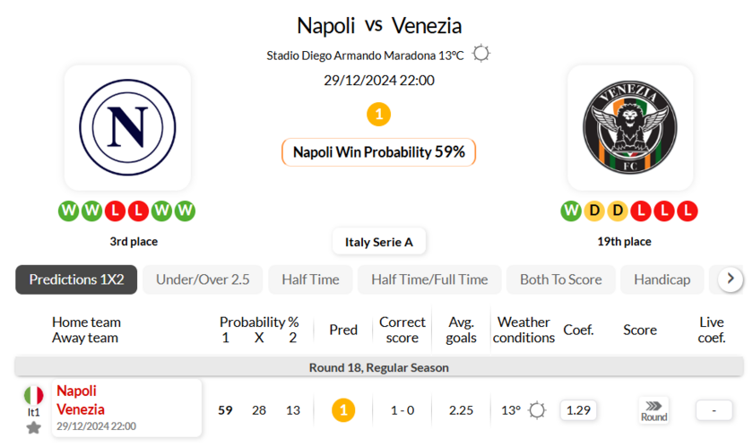 Napoli are conceding an average of 0.71 goals in Serie A matches