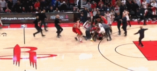 nba直播讯 阿门和希罗缠斗在一起,两人拉拽抱摔成为了导火索,随后多名球员汇集冲突升级,最终导致6人被驱逐。