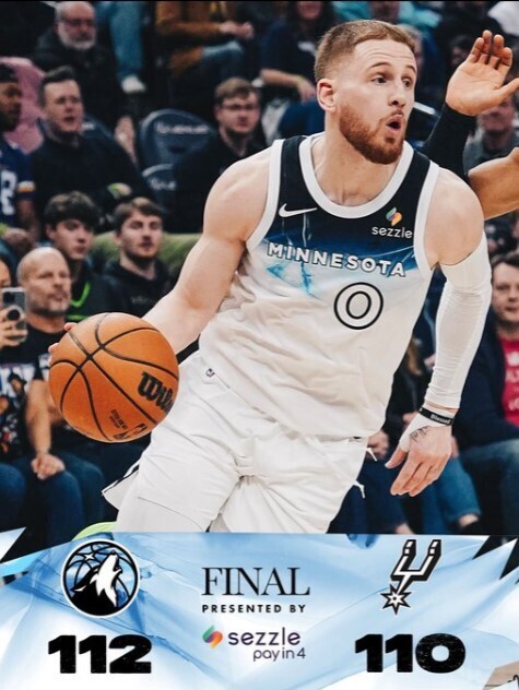 在今日的另一场NBA常规赛中,森林狼队主场迎战马刺队,最终以112-110的比分战胜对手。尽管马刺队的文班亚马表现出色,砍下34分的高分,但仍未能带领球队取得胜利。森林狼队则在迪文岑佐的带领下多点开花,成功拿下比赛。