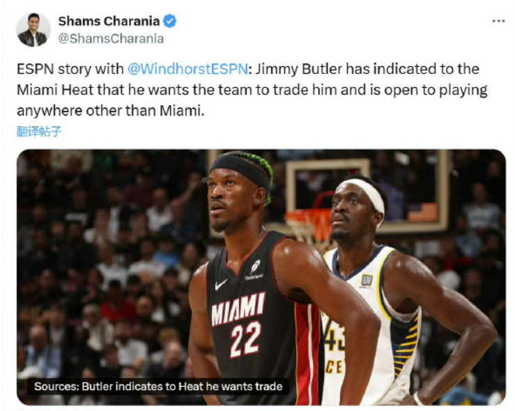 虽然此前热火官方声明不会交易巴特勒,但架不住后者主动申请交易。